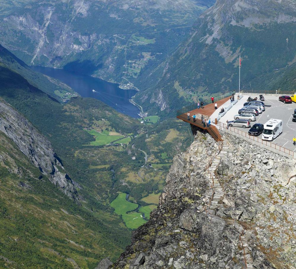 Классическая смотровая точка с видом на Гейрангер-фьорд и окружающие горы. Место, где особенно ощущается масштаб и глубина норвежского ландшафта.