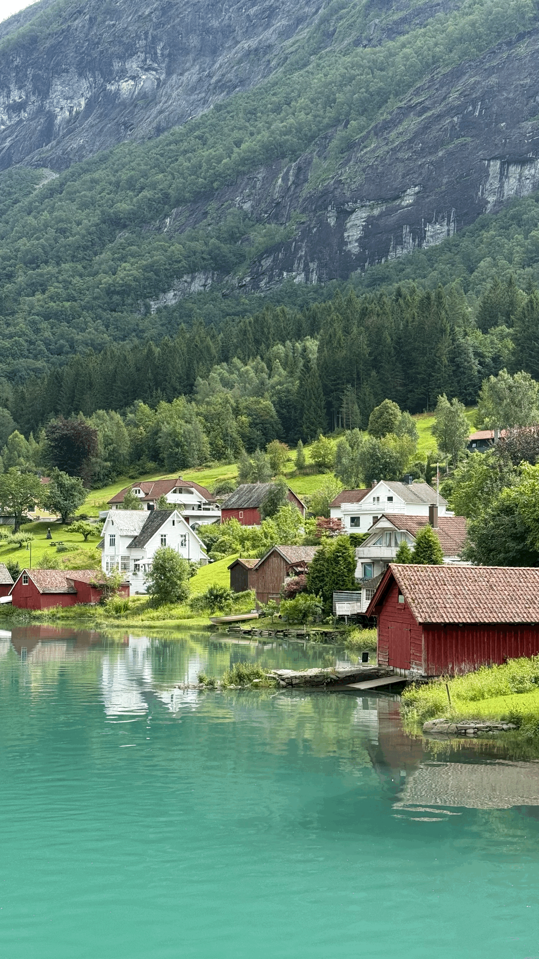 Живописная долина с традиционными норвежскими фермами и горными ландшафтами. Это место передаёт аутентичный характер страны и её связь с природой.